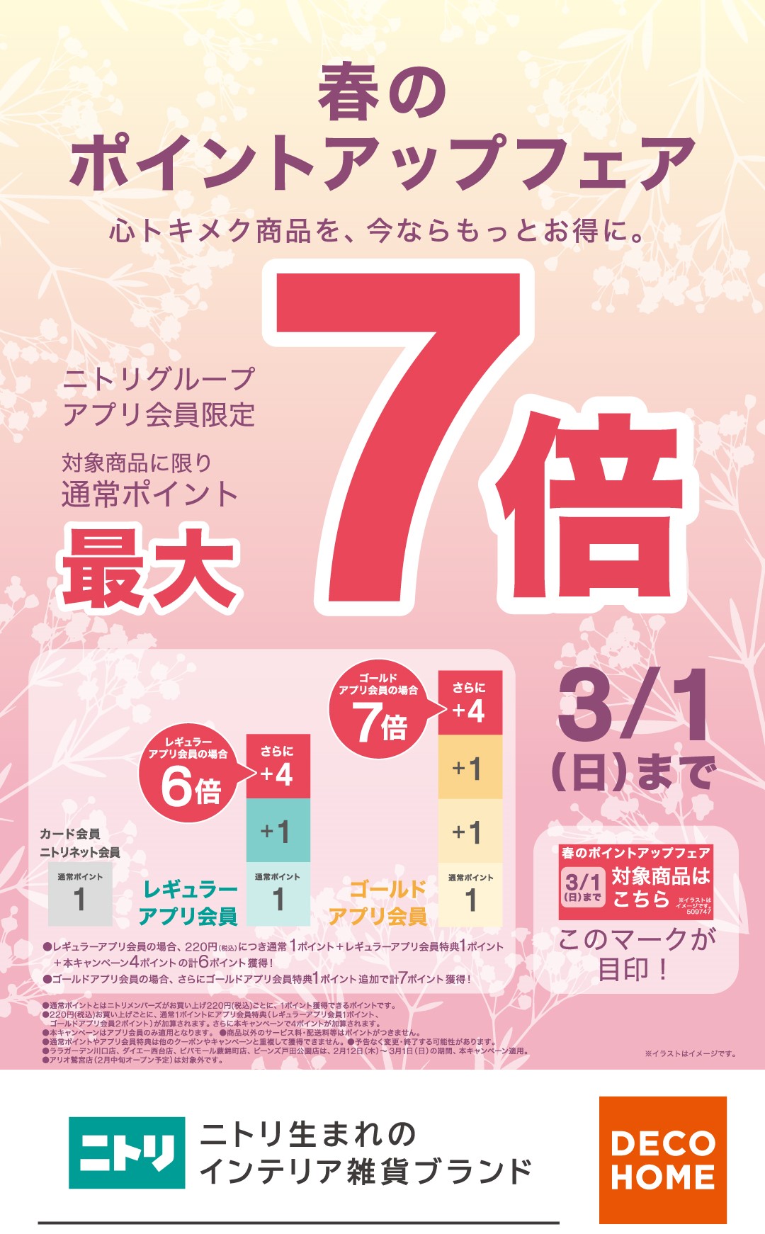 デコホームで春のポイントアップフェア開催中!!対象商品購入でアプリポイント最大7倍!!